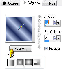 Style Linéaire - Angle à 45 - Répétitions à 5 - Inverser coché