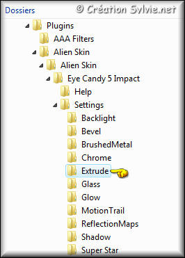 répertoire Settings du filtre Alien Skin Eye Candy 5 - Impact
