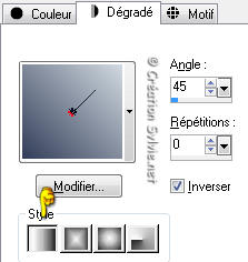Style Linéaire - Angle à 45 - Répétitions à 0 - Inverser coché