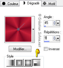 Style Radial - Angle à 45 - Répétitions à 9 - Inverser décoché