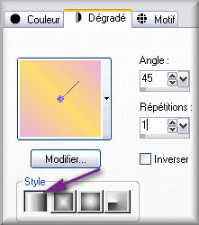 Style Linéaire - Angle à 45 - Répétitions à 1 - Inverser décoché