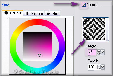 Décocher la Texture (la couleur est donc en Premier Plan)