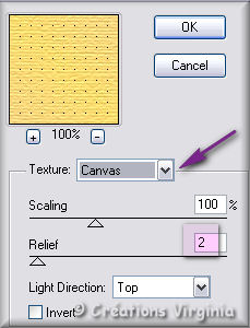 Configuration : Texture = Canvas / 100% - 2 - Light Direction :Top