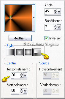 Style Radial – Angle 45 – Répétition : 7 – Inverser : coché